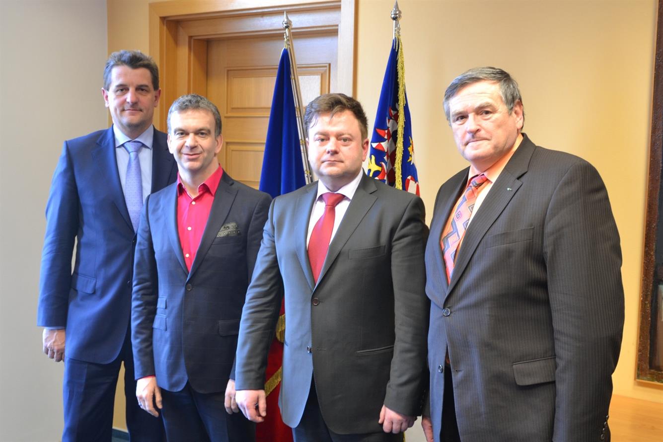 Zleva: 2. náměstek hejtmana L. Joukl, 1. náměstek hejtmana V. Novotný, honorární konzul Slovenska J. Weigl a hejtman kraje J. Běhounek.